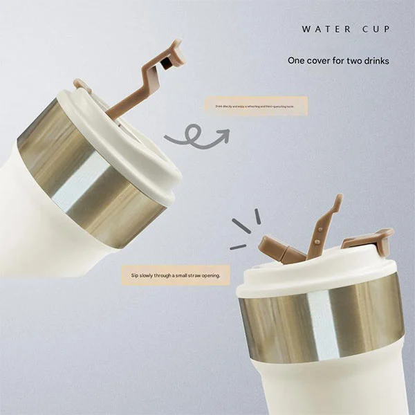 17oz ट्राभल टम्बलर दैनिक प्रयोगको क्रममा साना धुलो, कीराहरू र अन्य मलबेहरू झर्नबाट रोक्नको लागि डस्ट कभरले सुसज्जित छ। यसमा डुअल ड्रिंक डिजाइन पनि छ।