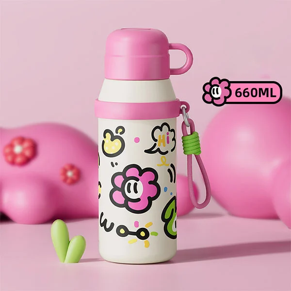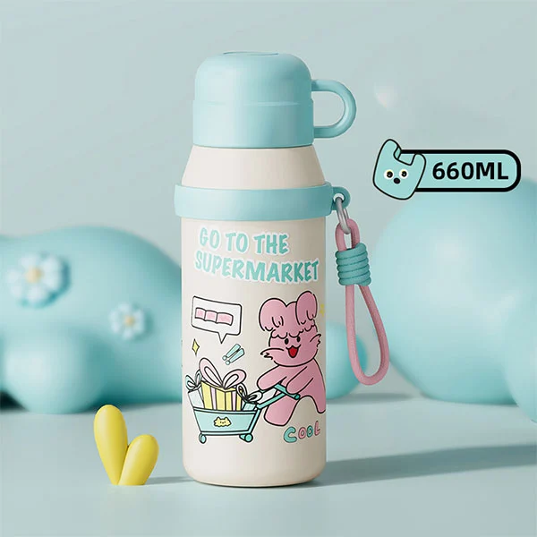 यस बच्चाहरूको क्षमता स्टेनलेस स्टील कार्टुन पानीको बोतल 66 6600 मिलिट हो।
