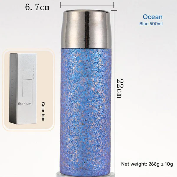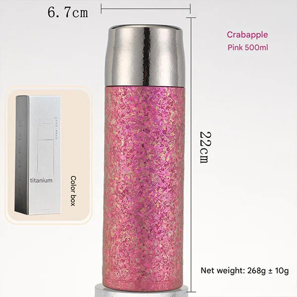 टाइटेनियम पानीका बोतलहरूले डबल-लेयर भ्याकुम इन्सुलेशन डिजाइन अपनाउछन्। हाम्रा धातुका पानीका बोतलहरूले तपाईंको पेय पदार्थहरूको लागि उत्तम इन्सुलेशन प्रदान गर्न प्रमाणित भएका छन्, चाहे त्यो चिसो कोला होस् वा तातो कफी। तातो पेय पदार्थलाई ८ घण्टासम्म न्यानो राख्न सकिन्छ भने चिसो पेय पदार्थलाई १२ घण्टासम्म न्यानो राख्न सकिन्छ। (प्रयोगात्मक डेटा: इन्सुलेशन: 99 ° C को कोठाको तापक्रममा पानी थप्नुहोस्, र इन्सुलेशनको 6 घण्टा पछि तापमान 60 ° C भन्दा बढी हुनेछ; प्रशीतन: 0 ° C को कोठाको तापक्रममा पानी थप्नुहोस्, र 6 घण्टा इन्सुलेशन पछि तापमान 5 ° C भन्दा कम हुनेछ।)