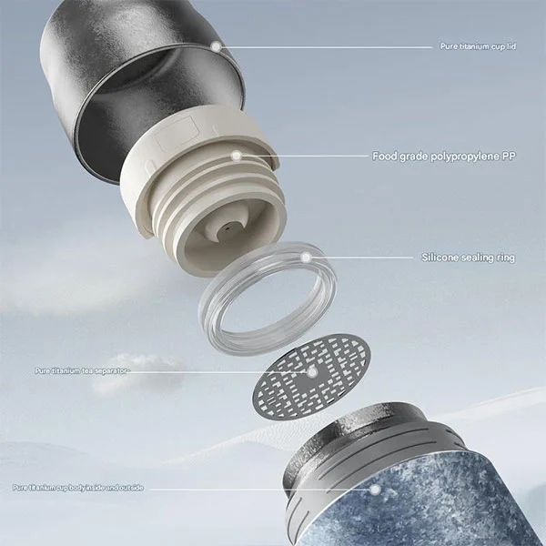 क्लासिक चिया ब्रुअर, टाइटेनियम बोतल भित्र र बाहिर शुद्ध टाइटेनियमबाट बनेको लीक प्रुफ कप, लिक प्रुफ लिड्स, शुद्ध टाइटेनियम कप क्याप्स, र डबल-लेयर एन्टि स्क्याल्डिंगले सुसज्जित छ!