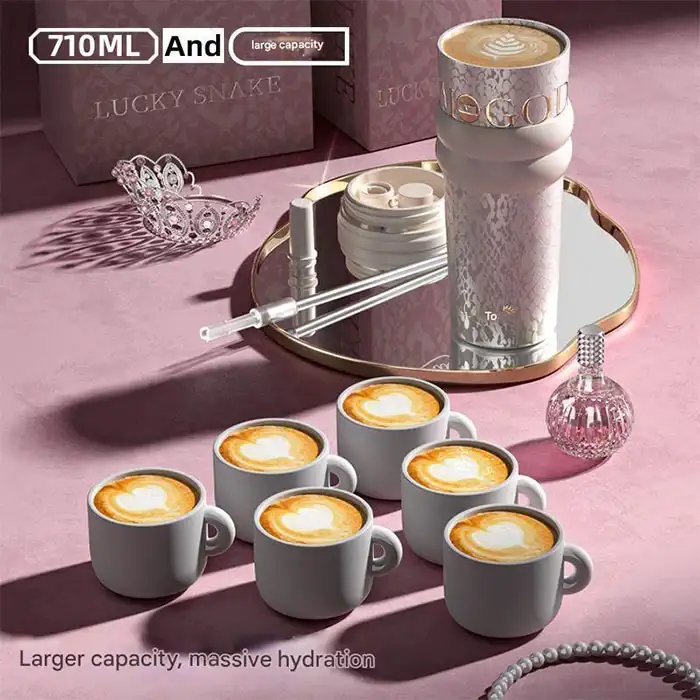 झोलामा झुण्डिएको भिक्टोरिया लीकप्रूफ टम्बलर फेसनल सहायक हो, पाउडर फग स्टाइल र साना स्कर्टका लागि उपयुक्त, र सूटका लागि उपयुक्त कालो शैली, तपाईंलाई भीडको केन्द्रबिन्दु बनाउँछ।
